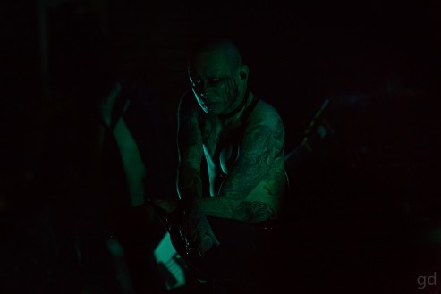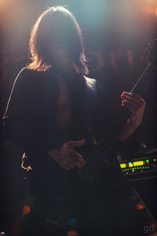 The band started off with “Behind a Vacant Image” and “Sustain the Untruth,” both from Arche, and old-school (circa 2003) track “Obscure.” That last one is fitting given the mixing of old and new styles on Arche. This triplet begins slow and gets heavier and faster. One thing I note is that at Slim’s I can actually hear the music up here. At the Regency during the first three songs in the pit I could feel the bass thumping but can’t really hear much else.