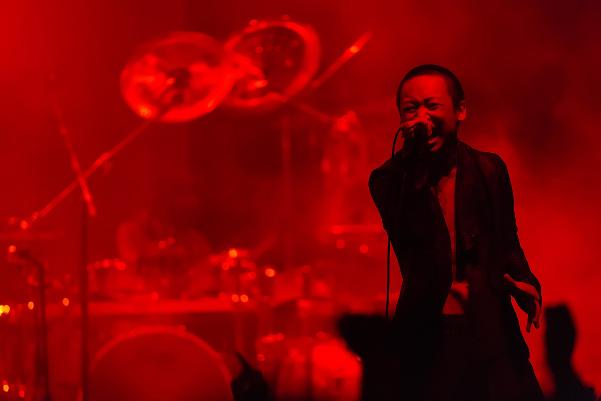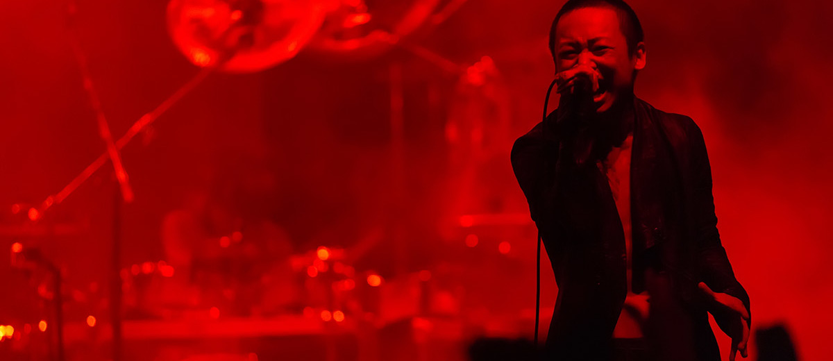 DIR EN GREY was formed in 1997 from the ashes of the band La:Sadie’s. Over the last fourteen years they have held the same lineup in the form of Kyo, Kaoru, Die, Toshiya, and Shinya. Originally a visual kei band with costumes and makeup, they soon transitioned into what you see today. Frontman Kyo’s bout of throat trouble cancelled last year’s tour and as a result they have been absent from San Francisco for almost two years. People were hungry for them and you could tell by the fact that the line stretched down most of a city block.